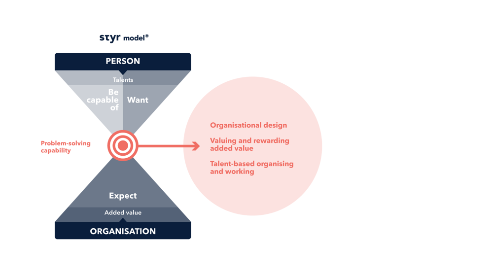 The Styr model is a hybrid job grading model that is unique in its approach. It focuses not only on the expectations of the organisation (the work you get to do), but also on what people want and can do. The focus here is on the problem-solving capabilities needed and the talents and skills it takes to do the job well.